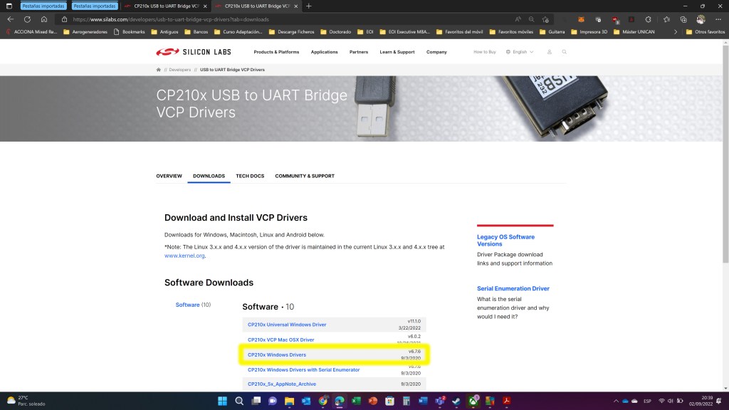 Una vez que hayáis accedido a esta página, tendréis que seleccionar la opción de «Download» y descargaros el Software «CP210x Windows Drivers» (v6.7.6 del 9/3/2020).