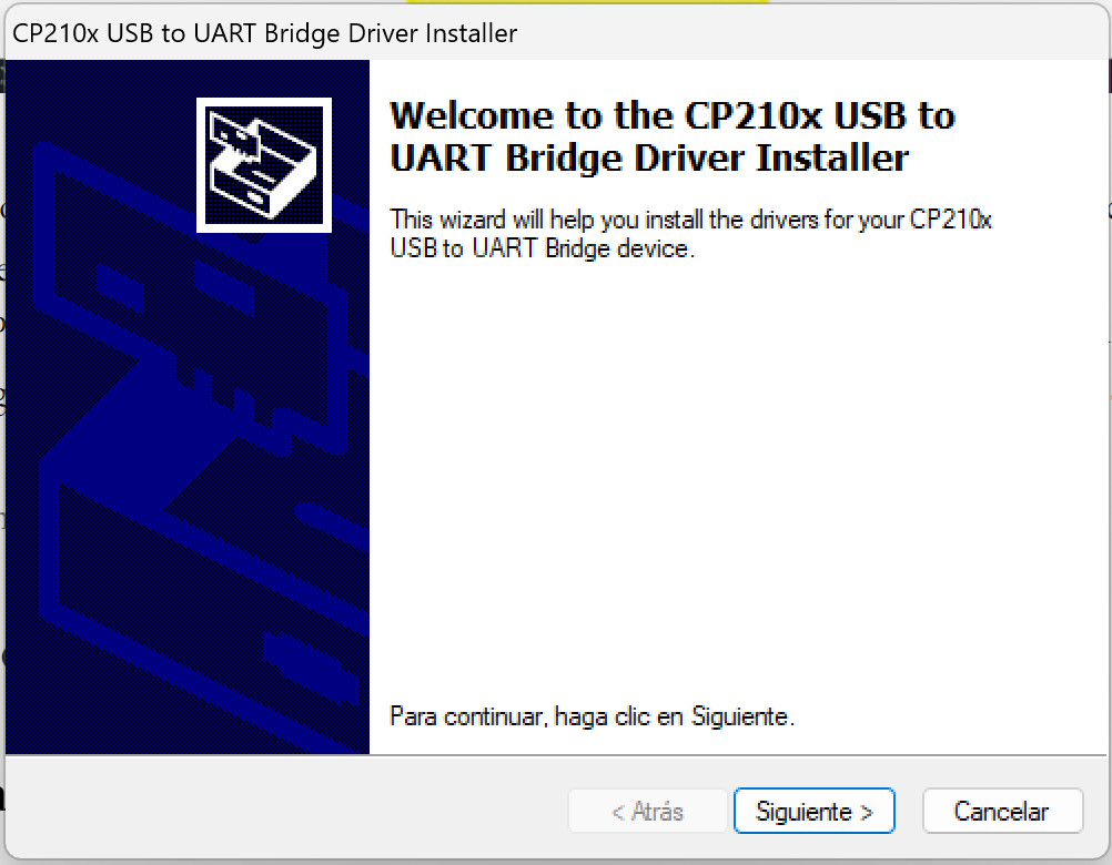 En primer lugar tenemos que instalar en nuestro ordenador los drivers para que pueda comunicarse con M5STACK. Eso lo haremos con el software de Silicon Labs CP210x USB to UART Bridge. VCP Drivers.