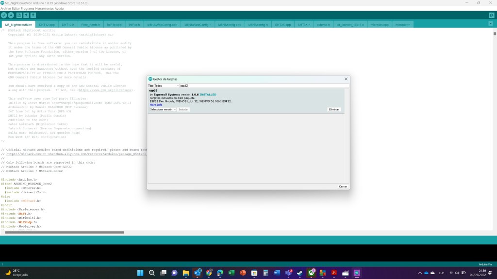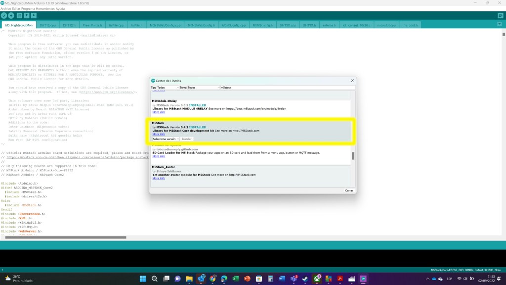 Ya por fin habremos instalado la tarjeta M5STACK en el IDE de Arduino de cara a poder transferir luego el software del programa a este dispositivo.