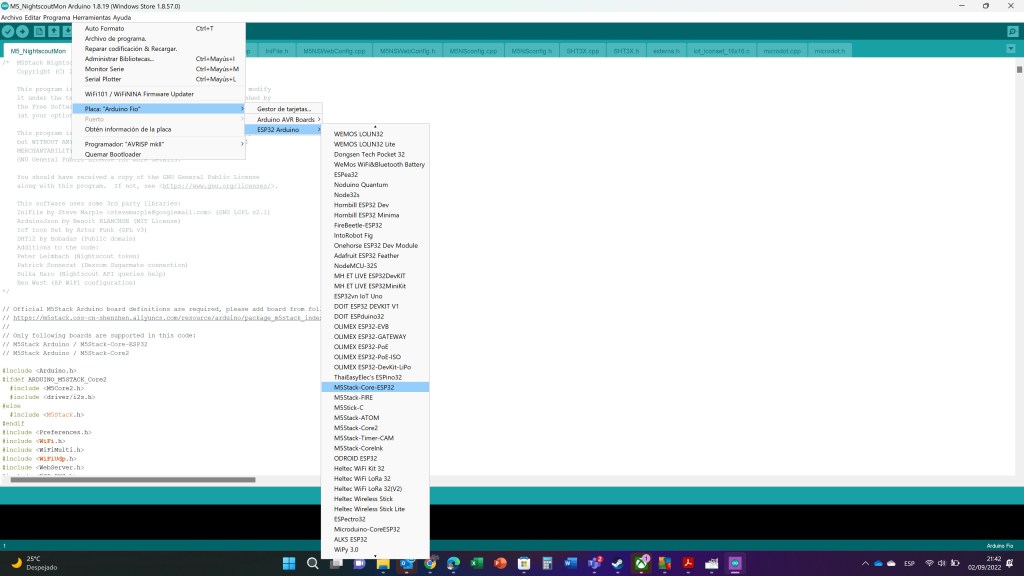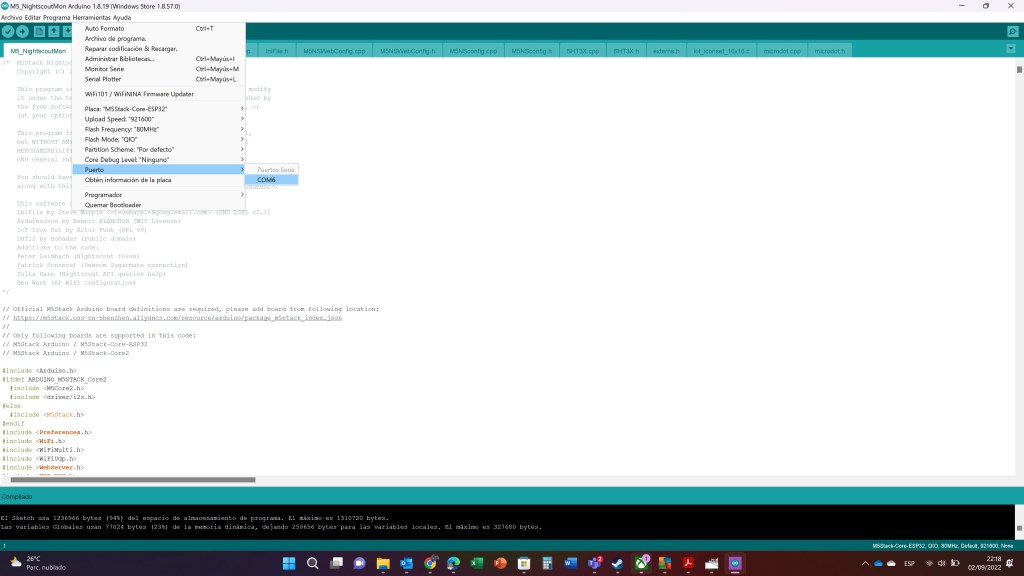 En ese momento veréis en el IDE de Arduino todo el código en C+ del programa que en el apartado siguiente transferiremos al M5STACK.
