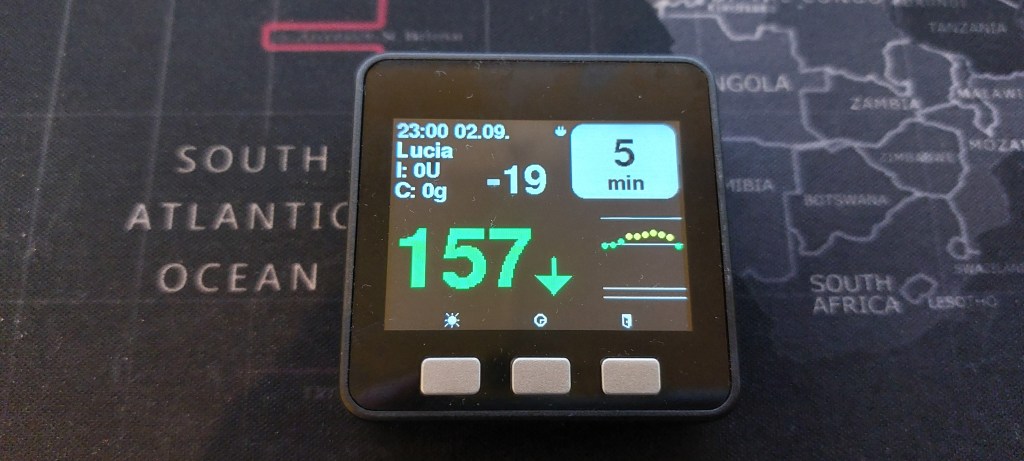 Este problema se agravaba por la noche, cuando estoy en mis dulces sueños y por alguna razón quiero consultar estos valores. Mi mujer es una firme defensora de la idea de no tener el móvil cerca nuestro cuando estamos durmiendo (¡me dice siempre que nos fríe el cerebro! 🙂 ). Por lo que imaginaros lo que significa para mi ir a tientas por la noche hasta el salón o hasta el cuarto de mi hija, cada vez que quiero ver cómo está su nivel de glucosa (me voy dando golpes con todas las esquinas 🙂 ).