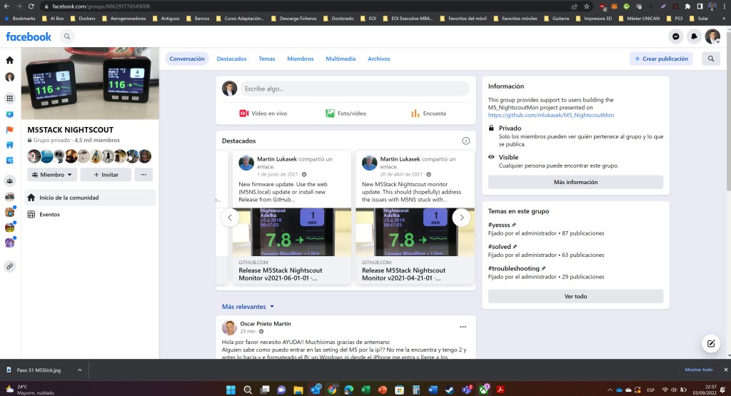 No quería terminar este artículo sin darles las gracias a los miembros del grupo de Facebook M5STACK NIGHTSOCUT de donde he obtenido la mayor parte de la información para hacer esta guía. Si estáis interesados en construir alguna otra versión de M5STACK, en ese grupo podéis encontrar tutoriales para crear muchos de ellos. uno que me gusta bastante es un dispositivo de bolsillo impreso en 3D. Existen también otras muchas variantes del diseño original de Martin Lukasek. ¡Es genial la creatividad de la gente y las ganas de compartir sus diseños! ¡Qué bueno!